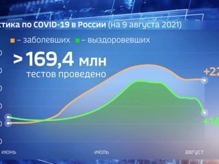 Как следует из данных оперативного штаба, за сутки в России прирост новых заболевших коронавирусной инфекцией составил 22 160 случаев, в ходе тестирования выявлено 1 914 (8,6%) бессимптомных носителей вируса. Подраздел: общество Источник: https://www.vesti.ru/video/2325319 09.08.2021 12:00