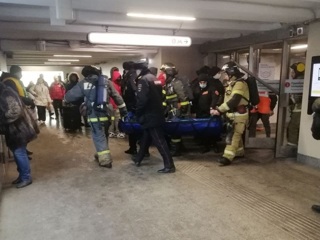 Спасатели подняли на платформу оказавшегося под первым вагоном поезда пассажира. В настоящее время его осматривают врачи.